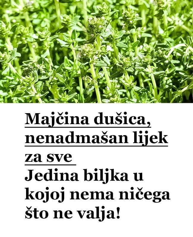 Majčina dušica je jedna od najčešće korištenih ljekovitih biljaka: upotrebljava se “skoro za sve” – od liječenja prehlade, do “ubijanja” raznih mikroba.