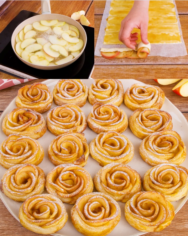 4. Tijesto preklopiti preko donjeg dijela jabuka i pažljivo urolati u oblik ružice.