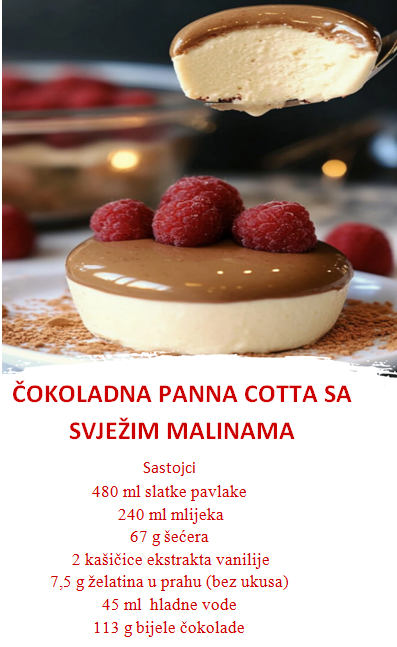 – Preko svake panna cotte prelijte tanki sloj otopljene čokolade i lagano je nagnite da se ravnomjerno rasporedi.