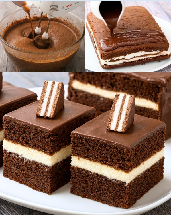 Ove čokoladne kocke su luksuzni desert sa slojevima: mekani čokoladni biskvit, lagana mascarpone krema, sloj lješnjak namaza i završni sloj sjajne tamne čokolade. Svaki zalogaj je kremast, bogat i savršeno uravnotežen između slatkoće i dubine ukusa. Idealno za rođendane, proslave ili jednostavno da impresionirate goste.