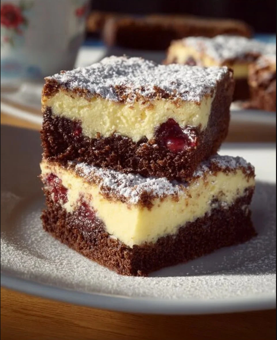 Pecite u prethodno zagrijanoj rerni na 180°C oko 40 minuta, dok površina ne postane zlatnosmeđa, a nadjev se stegne. Ostavite kolač da se prohladi, zatim ga pospite šećerom u prahu.