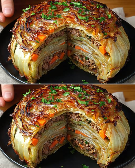 4. Stavite tanjir preko kalupa i pažljivo **preokrenite** – dobićete prelijepu kupusnu krunu!