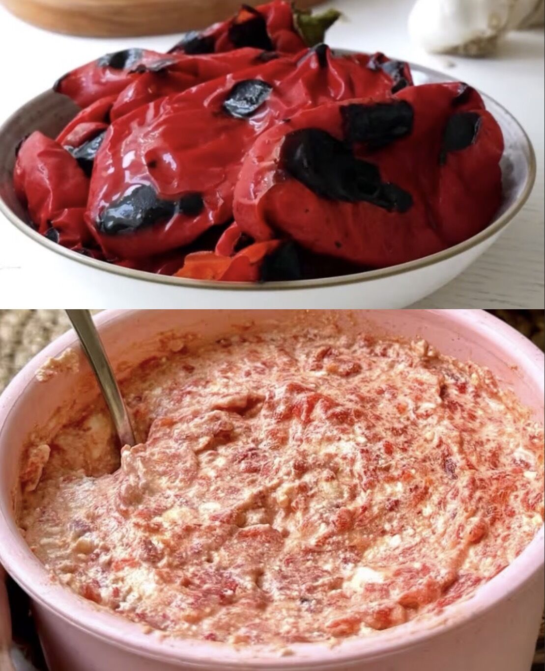 Dodajte čen belog luka, prethodno protisnut, i blendirajte sa paprikama dok ne dobijete kremastu smesu.