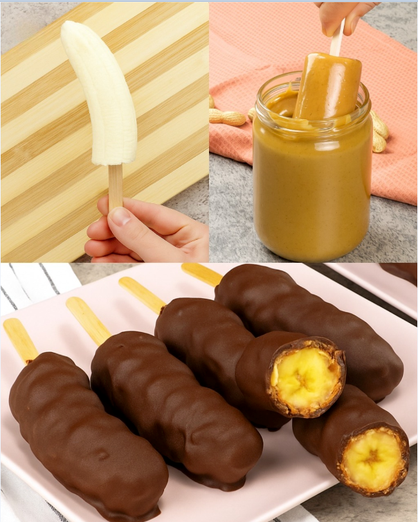 Banane ogulite i isijecite na kolutove debljine oko 3–4 cm. Svaki komad nabodite na štapić kao lizalicu.