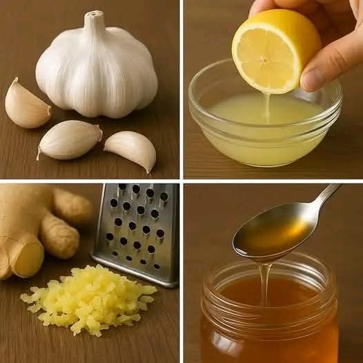 Đumbir, luk, bijeli luk, sok od limuna i med