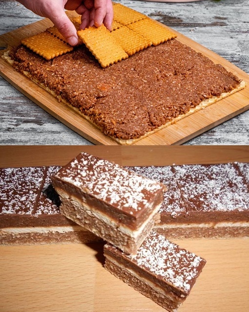 Dvije šolje vode, 125 grama margarina, 200 grama sjeckanog kokosa, 100 grama čokolade, 250 grama mljevenog keksa, jedan list oblatne i 200 grama keksa.
