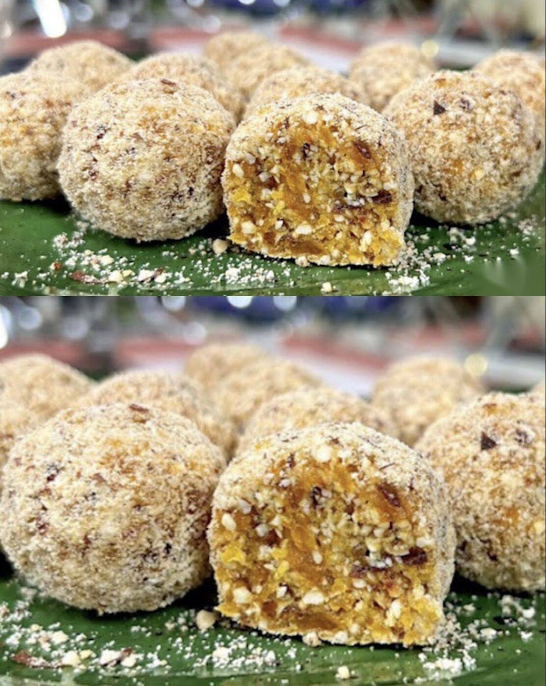 Uzmite malo smjese i formirajte kuglice rukama, koje potom možete uvaljati u mljevene orahe, lješnjake, kokos ili po želji.