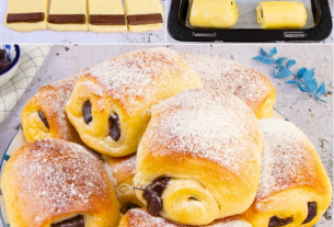 Uviti u najlon foliju i ostaviti na hladnom mestu da se dobro ohladi. Ohlađeno seći na šnite 2-3cm široke. Najbolje je koristiti oblandu sa većim kockama ( vizualno lepše izgledaju kad se iseku nego sa sitnim kockama. Ja sam koristila sa sitnim kockama jer nisam imala druge a originalni recept je sa krupnijim kockama ) Kada premazujete oblandu krupne kocke okrenite prema radnoj površini a premazati stranu koja je ravna.