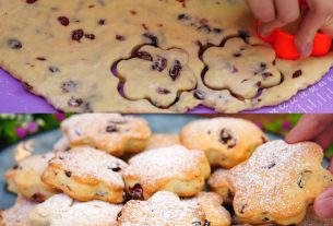 Dodati i kiselo vrhnje. Kekse izlomiti na komade ne moraju biti sitni pa dodati u vruć puding. Dobro izmješati. Tepsiju srednje veličine premazati margarinom pa istresti pola smjese.