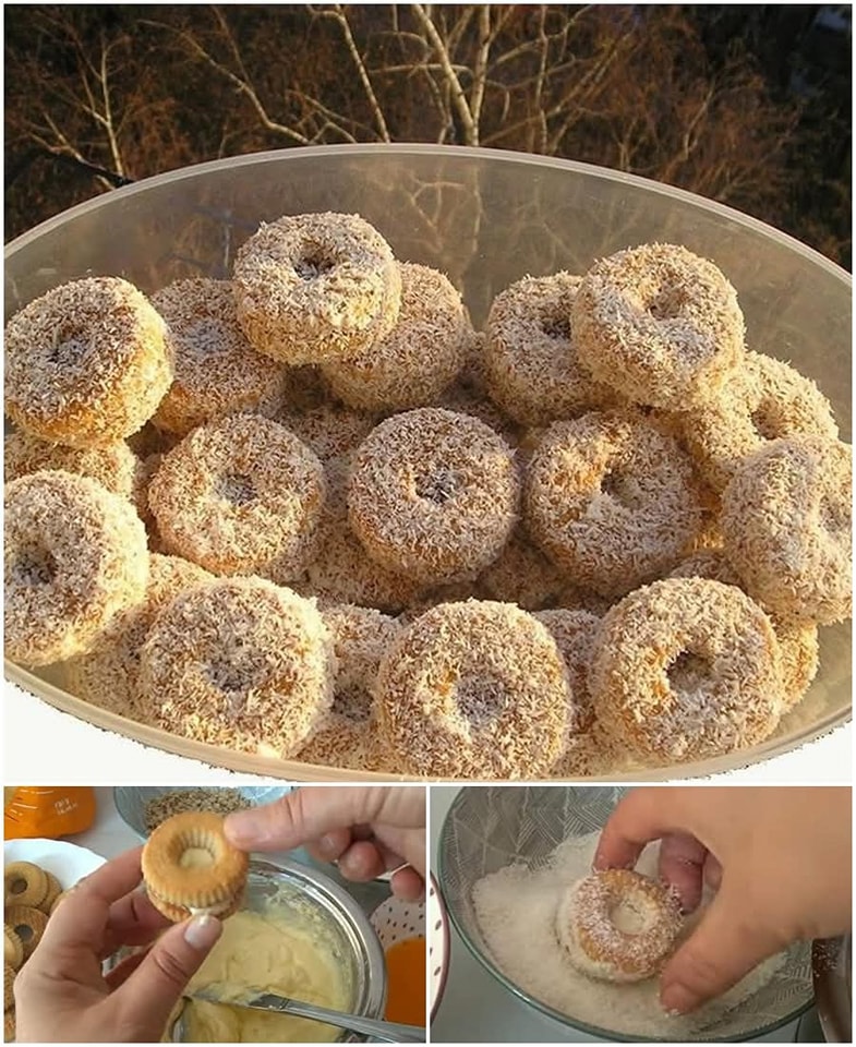 Kolutiće umakati u mlijeko sa rumom,sa manjom kašikom stavljati fil i uvaljati u kokos.Sve to raditi dok nepotrošite fil i kolutiće.