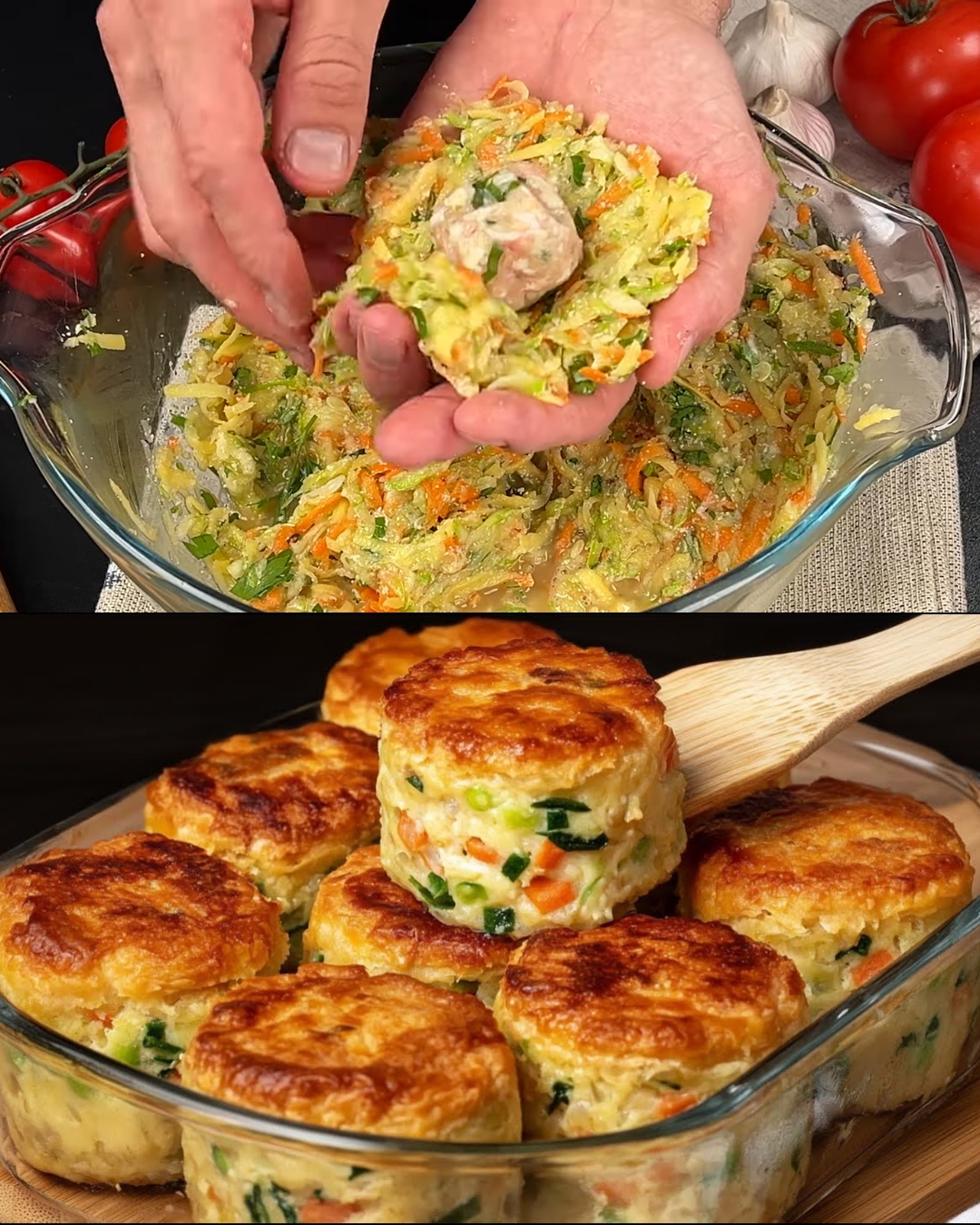 U većoj zdjeli umutite 2 jaja i 1 žumanjak sa solju, biberom i origanom. Dodajte tikvicu, mljevenu puretinu, mladi luk, bijeli luk, narendanu mozzarellu, narendanu šargarepu, sjeckani luk, kockice krompira, griz i peršun. Po želji dodatno posolite i pobiberite. Dobro izmiješajte dok ne dobijete ujednačenu smjesu.