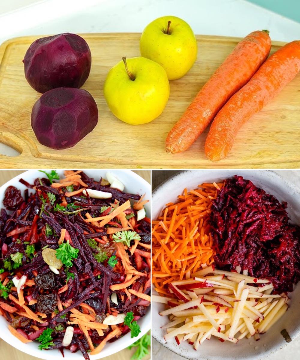 Ova jednostavna, živahna salata prepuna je hranjivih tvari i oduševljena okusom! Kombinirajući zemljanu slatkoću cvekle, hrskavost jabuka i prirodnu slatkoću mrkve, ovo jelo nije samo ukusno, već je i nevjerovatno dobro za vaše zdravlje. Evo kako možete učiniti ovu zdravu salatu sedmičnom osnovnom namirnicom u svojoj ishrani.