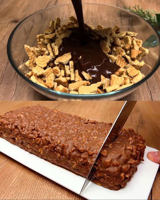Dobro promiješajte dok sve mrvice keksa ne budu ravnomjerno obložene čokoladnom smjesom.