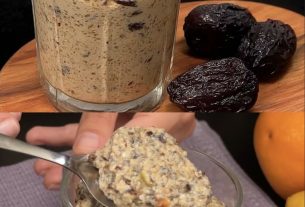 Za pripremu ovog doručka potrebni su sljedeći sastojci: – 300 ml kefira (ili nemasnog jogurta) – 2 žlice zobenih pahuljica – 1 žličica mljevenih lanenih sjemenki – 1 žličica kakaa u prahu – 5 do 7 debelih suhih šljiva.