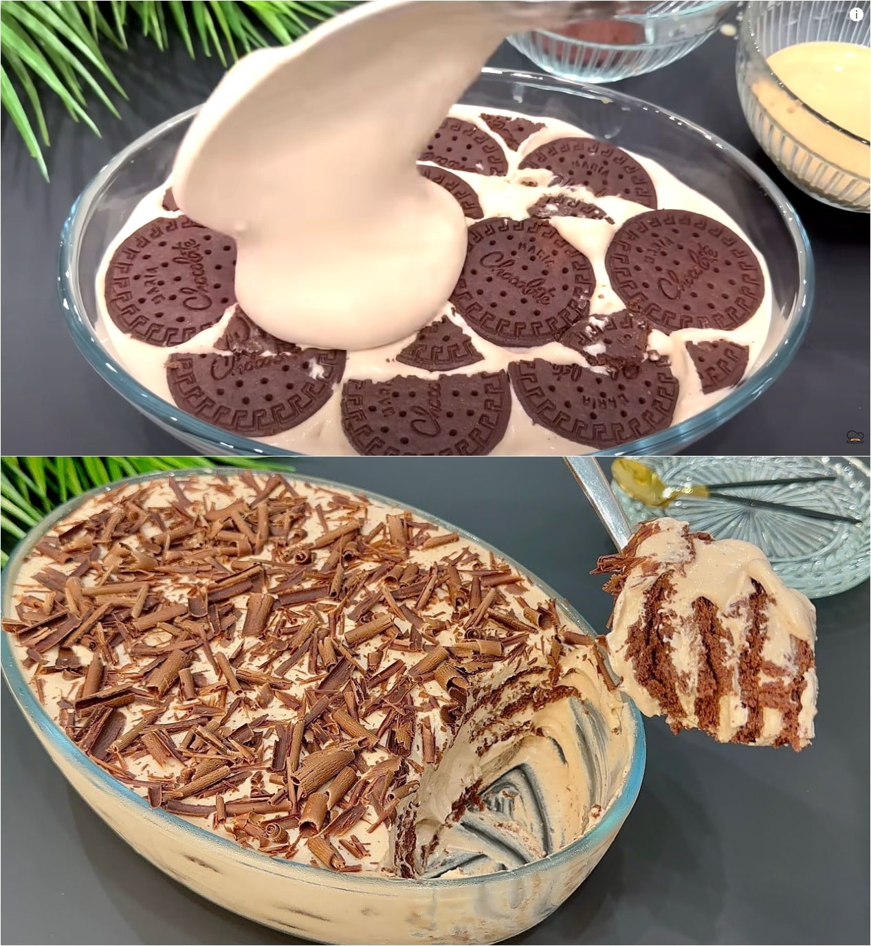 4. U kalup ređati red čokoladnih keksa prethodno natopljenih u **mleko s kafom**.