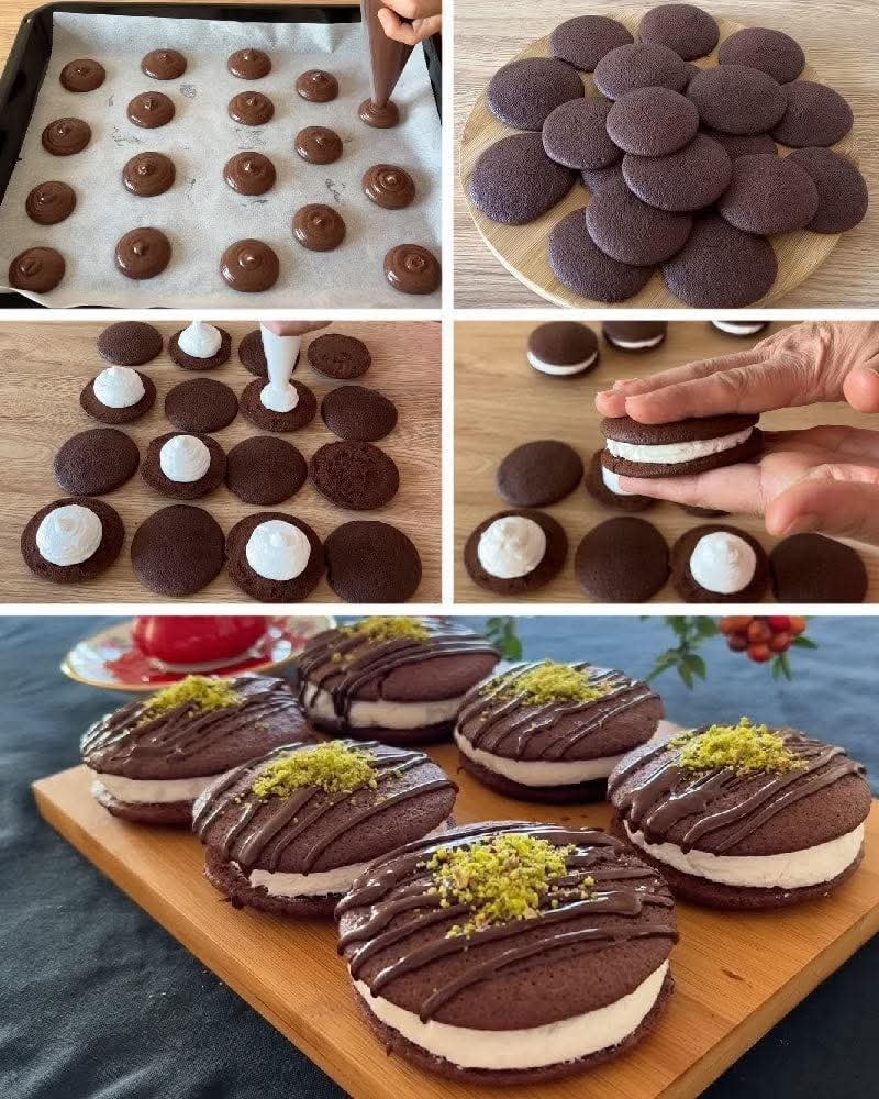 Danas vam donosimo recept za sandvič kolačiće koji će oduševiti i izgledom i ukusom. Za fil možete koristiti šlag ili kremu od vanilije prema želji.