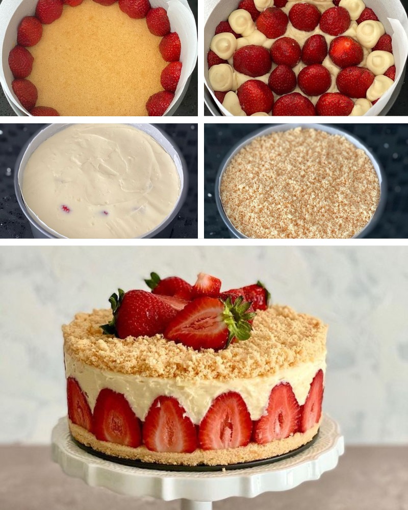 * Kremu sipajte počevši od rubova prema unutra, tako da lijepo prekrije jagode.