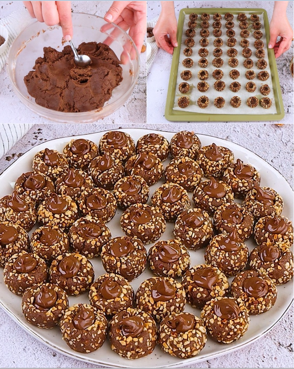 6. **Punjenje sa lješnik kremom:** Stavite malu kašičicu lješnik kreme u svako udubljenje.