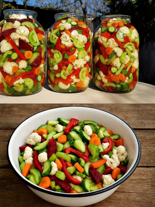 9. Prelijte povrće salamom, dok ne bude potpuno prekriveno.