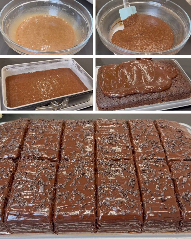 * Sipajte smjesu u kalup i pecite u unaprijed zagrijanoj rerni na **180 °C** oko **30–35 minuta**, ili dok čačkalica ne izađe suha.