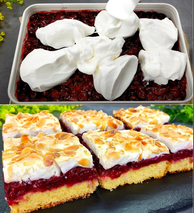 – Rasporediti beli biskvit po džemu od trešanja.