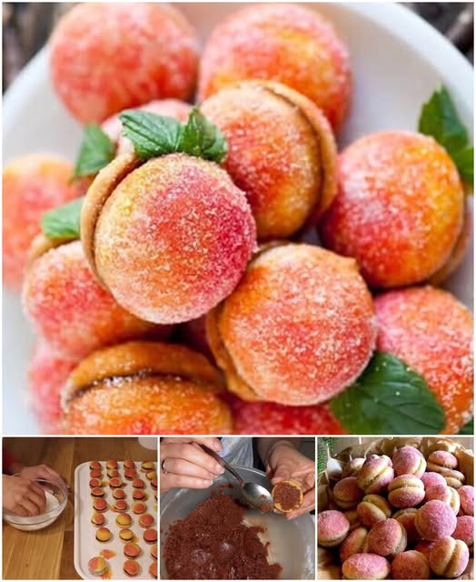 Peci na 175 stepeni (opciono prema vasoj rerni) ne manje od 15min a ne vise od 20min, ne smeju da dobiju braon boju pri dnu, podignite jednu i ako se ne vidi odozdo da je zivo testo a belo je, vadite ih iz rerne. Dok se jedna tura pece, valjajte drugu za drugi pleh i tako 4 puta otprilike, ispadne bas dosta breskvica, oko 120 polovina.
