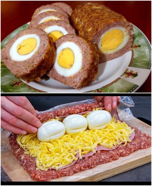 Na sredinu razoklagijanog mesa stavite obarena jaja. Prebacite meso sa jedne i druge strane preko jaja da dobijete rolat, ili stavite jaja uz ivicu i urolajte u rolat. Zatvorite rolat sa svih strana.