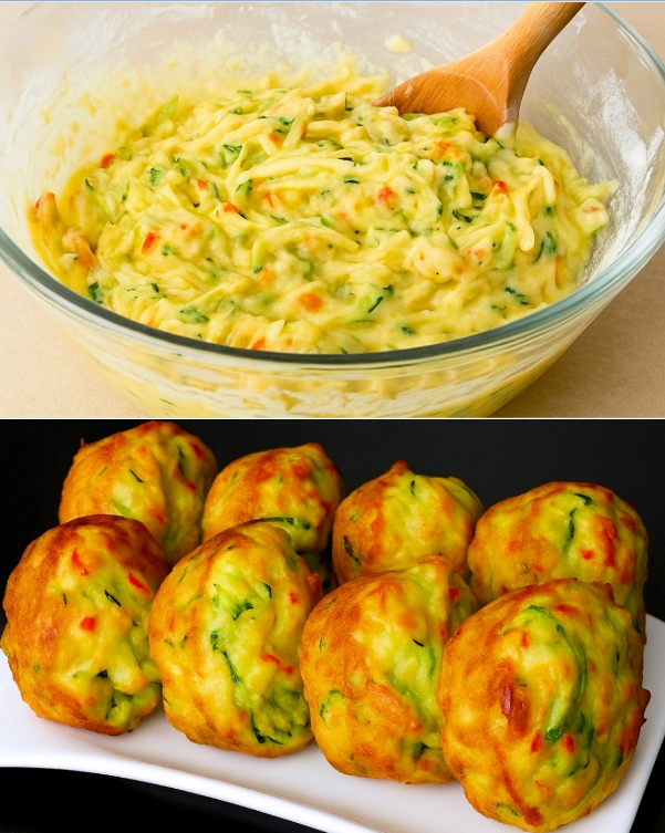 U velikoj zdjeli umutite jaja, dodajte so i biber. Umiješajte narendane tikvice, naribani sir i parmezan.