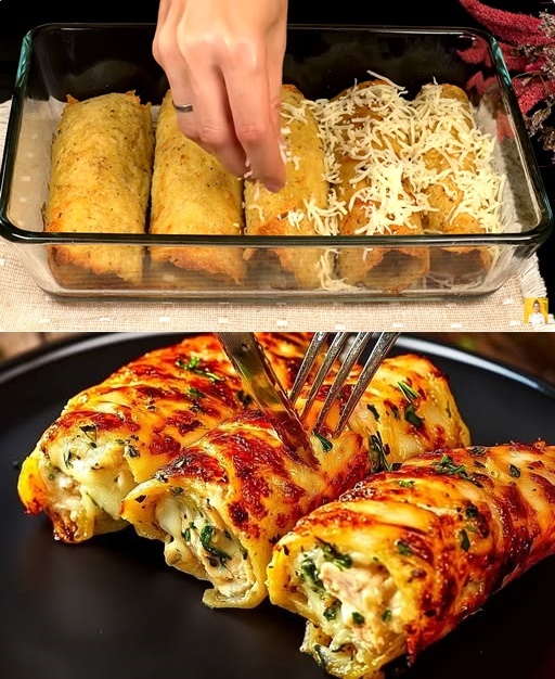 Ovo hranjivo i robusno jelo sadrži prekrasnu kombinaciju hrskavih krumpirovih palačinki, koje su izdašno punjene slanom mješavinom piletine i gljiva, sve pečeno do savršenstva i završeno slojem topljenog sira.