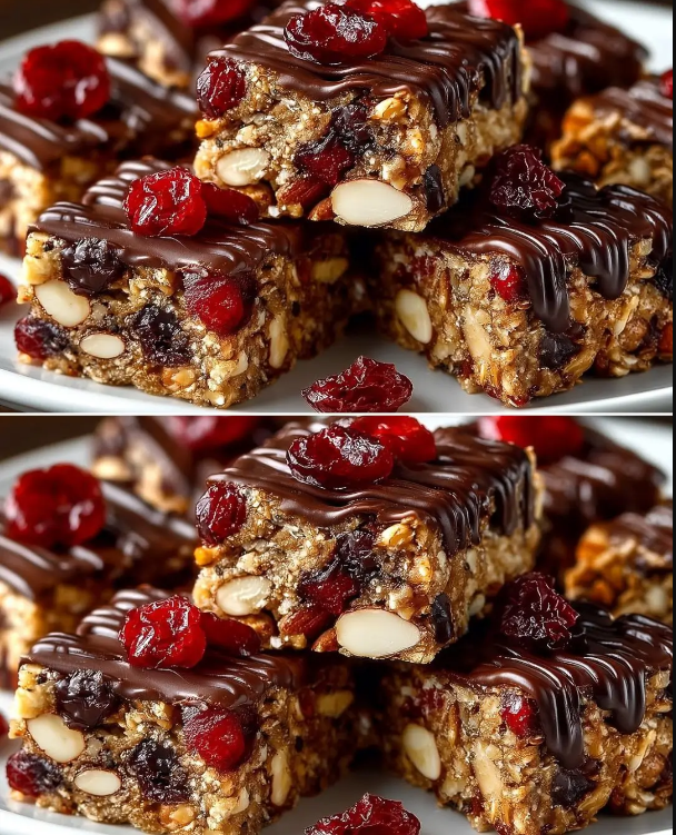 10. Isjecite pločice i prelijte ih otopljenom čokoladom. Po želji ukrasite brusnicama dok je čokolada još mekana.