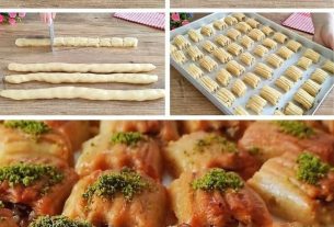 Nakon što se ohladi obilno ga premazati s 200 ml svježe tučenog slatkog vrhnja.