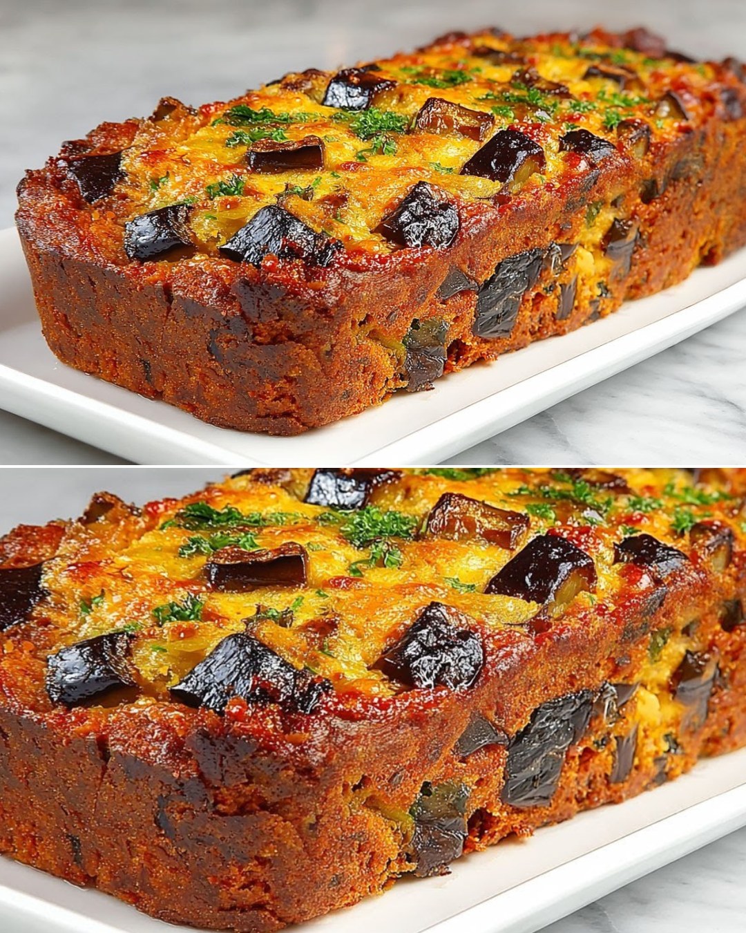 Zagrijte rernu na 180°C. Kalup za hljeb obložite papirom za pečenje ili premažite maslinovim uljem. Na dno kalupa složite polovinu prženih koluta patlidžana, blago ih preklapajući. Preko njih rasporedite ravnomjerno fil od sira i hljeba. Pokrijte preostalim kolutovima patlidžana, opet lagano preklapajući.